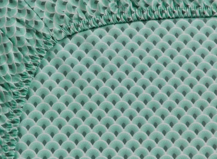 Das Grune Spannbettlaken Suki Hat Einen Allover-Print Aus Stilisierten Bogen Mit Raffinierten Details. Die Grunen Farben Verleihen Diesem Spannbettlaken Eine Frohliche Und Frische Ausstrahlung. Das Spannbettlaken Vervollstandigt Ihr Bett Und Ist Hervorragend Kombinierbar Mit Einem Passenden Bettbezug.
