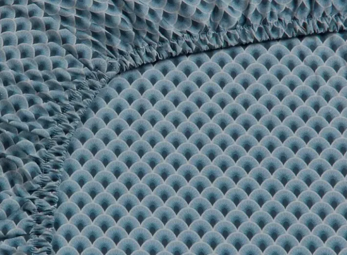 Dieses Blaue Spannbettlaken Ist Mit Dem Organischen Suki-Design Bedruckt. Der Design Ist Einen Allover-Print Aus Stilisierten Bogen Mit Raffinierten Details