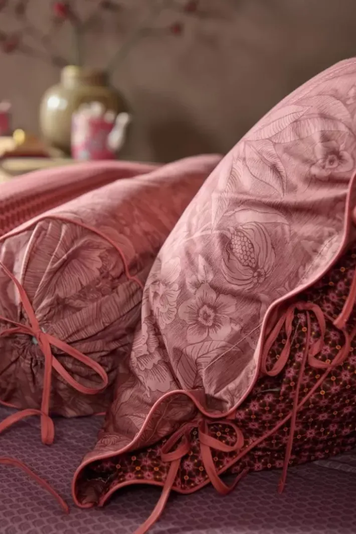 Die Kissen- Und Bettbezüge Haben Einen Eleganten Stehsaum An Den Randern Und Sind Mit Einer Runden Paspel Verziert. Auserdem Schmuckt Die Kissenbezüge Ein Einzigartiger Strickverschluss. All Dies Lasst Die Bettwasche Besonders Reich Und Luxurios Aussehen. Ein Blumchendruck Verziert Die Ruckseite Des Bettbezugs Sowie Die Kissenbezüge. Das Erlaubt Eine Beidseitige Verwendung. So Bekommt Deine Bettwasche Einen Verspielten Mix- Und Match-Effekt.