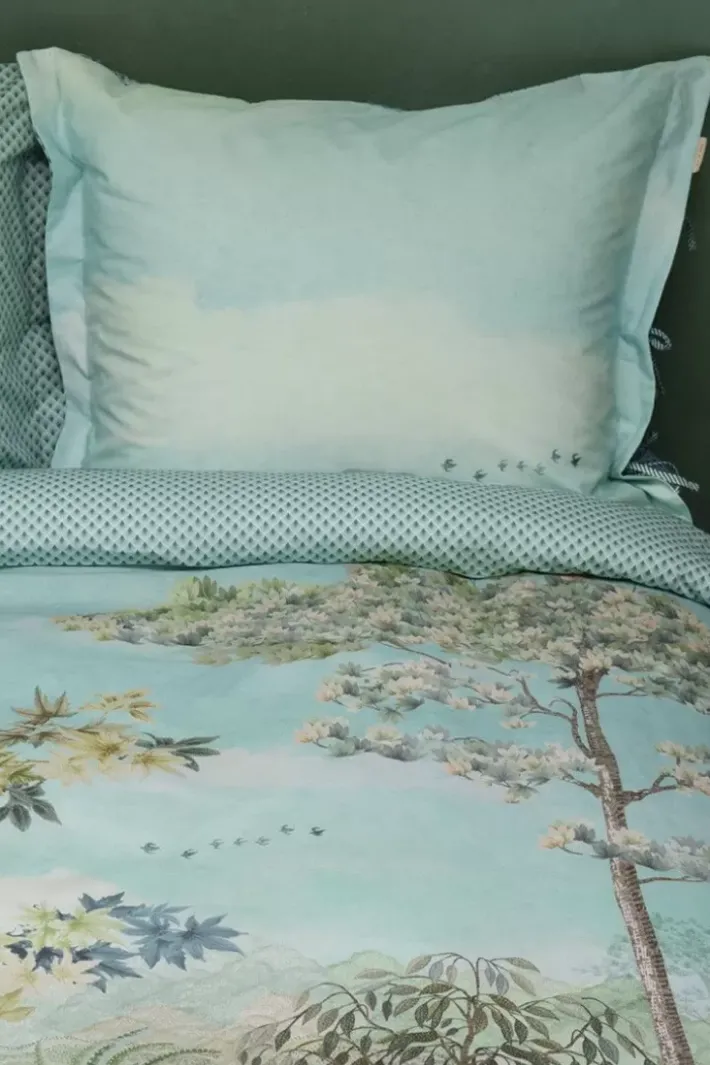 Als Inspiration Fur Den Grunen Kissenbezug Pip Paradise Dienen Die Malerischen Landschaften Japans. Auf Dem Design Ist Ein Zartgruner Himmel Zu Sehen, An Dem Einige Exotische Vogel Fliegen. Die Zarten Farben Verleihen Dem Kissenbezug Eine Exotische Und Zugleich Ruhige Ausstrahlung.