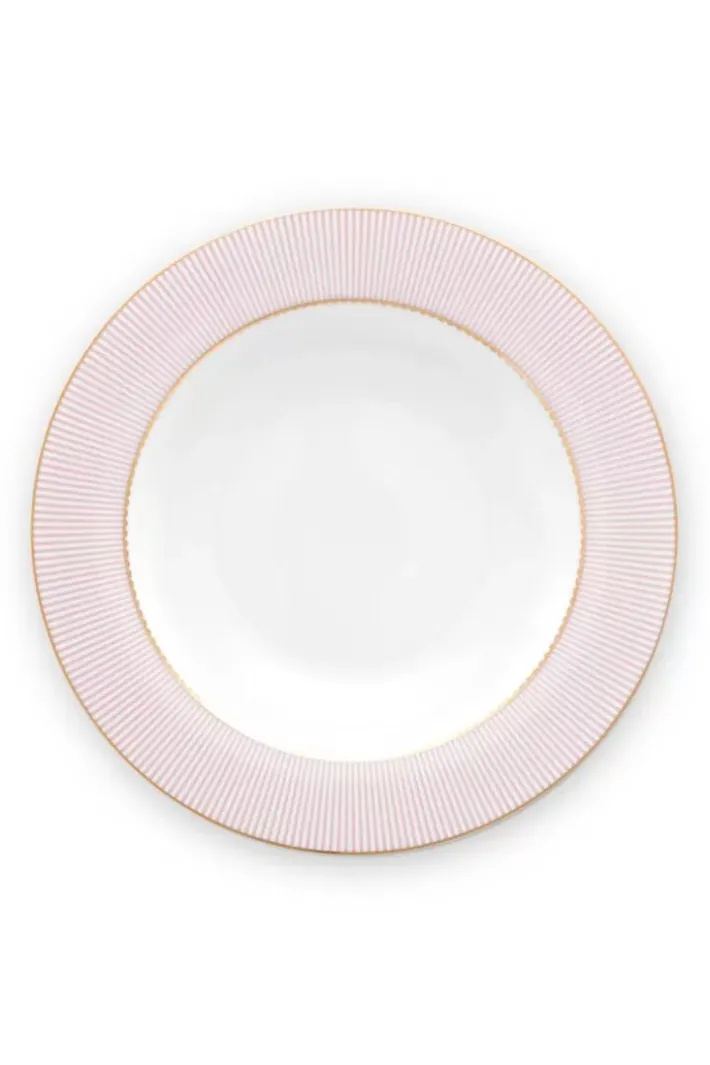 Dieser Rosa Tiefer Teller Wurde Aus Hochwertigem Porzellan Angefertigt Und Ist Mit Rosa Und Weisse Streifen Verziert. Jeder Rand Hat Goldene Details. Lasst Sich Hervorragend Mit Dem Ubrigen Essgeschirr Aus Der La Majorelle Kollektion Kombinieren.