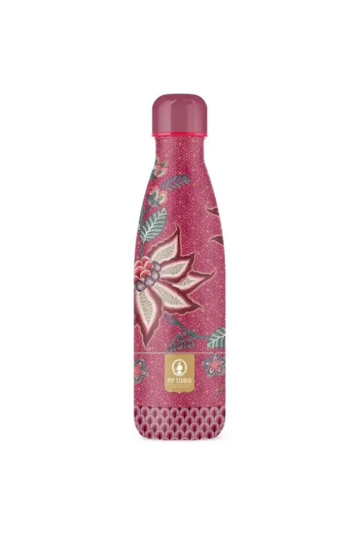 Bleiben Sie Mit Den Neuen Wasserflaschen Von Pip Studio Stilvoll Hydratisiert. Lassen Sie Sich Von Dem Wunderschonen Flower Fesitval Design Verzaubern. Diese Thermosflasche In Dunkelrosa Ist Mit Dem Flower Festival-Design Bedruckt. Das Frohliche, Dunkelroze Blumenmuster Flower Festival Besteht Aus Einer Variation Fantasievoller Roter Und Rosafarbener Chintzblumen Mit Hellblauen Und Grunen Blattern. Die Spielerisch Platzierten Blutenzweige Mit Grosen Verzierten Bluten Und Blattern Machen Dieses Raffinierte Design Zu Einem Besonders Reichen Erlebnis. Das Suki-Motiv Auf Dem Boden Dieser Flasche Sorgt Fur Eine Verspielte Abwechslung Der Prints.