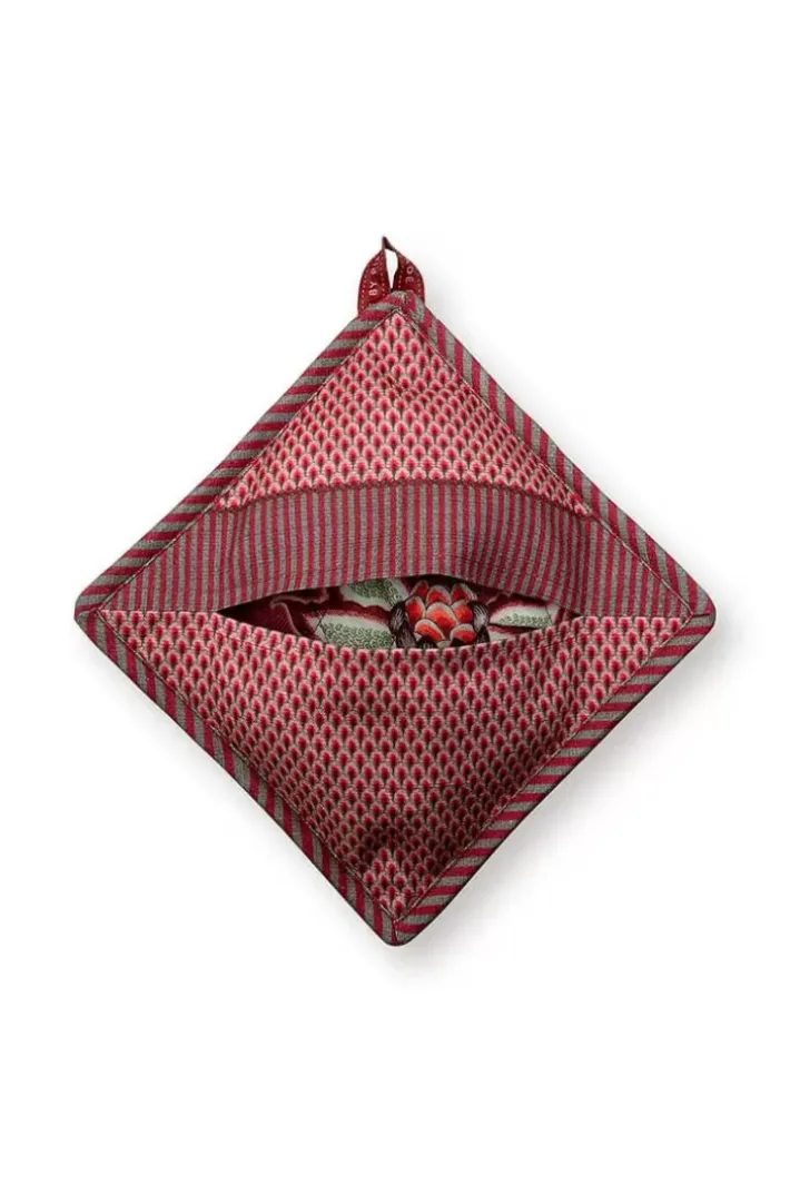 New Pip Studio Flower Festival Topflappen Quadratisch Dunkelrosa