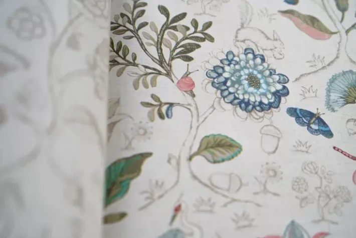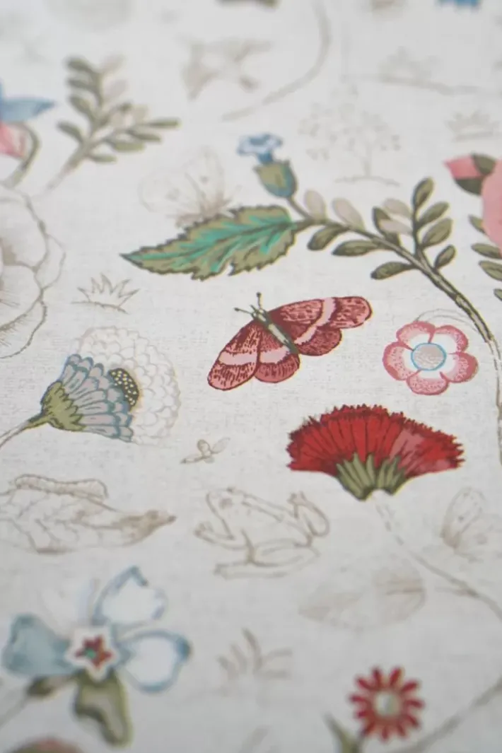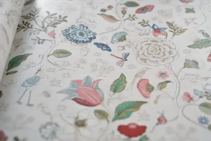 Diese Cremefarbene Tapete Mit Lebhaftem Spring To Life-Muster Verwandelt Jedes Zimmer Im Haus In Einen Stilvollen Raum. Die Kombination Aus Blumen, Pflanzen Und Vogeln Schafft Einen Erzahlenden Charakter Und Eine Besondere Atmosphare.