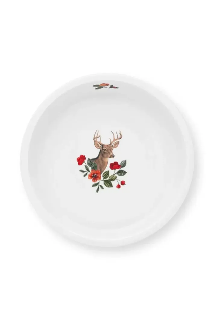 Backen Sie Ihre Gerichte Im Winterstil Mit Dieser Runden Auflaufform Aus Der Winter Wonderland Kollektion. Dieser Auflaufform Ist Mit Winterlichen Elementen Und Ein Hirsch Dekoriert.