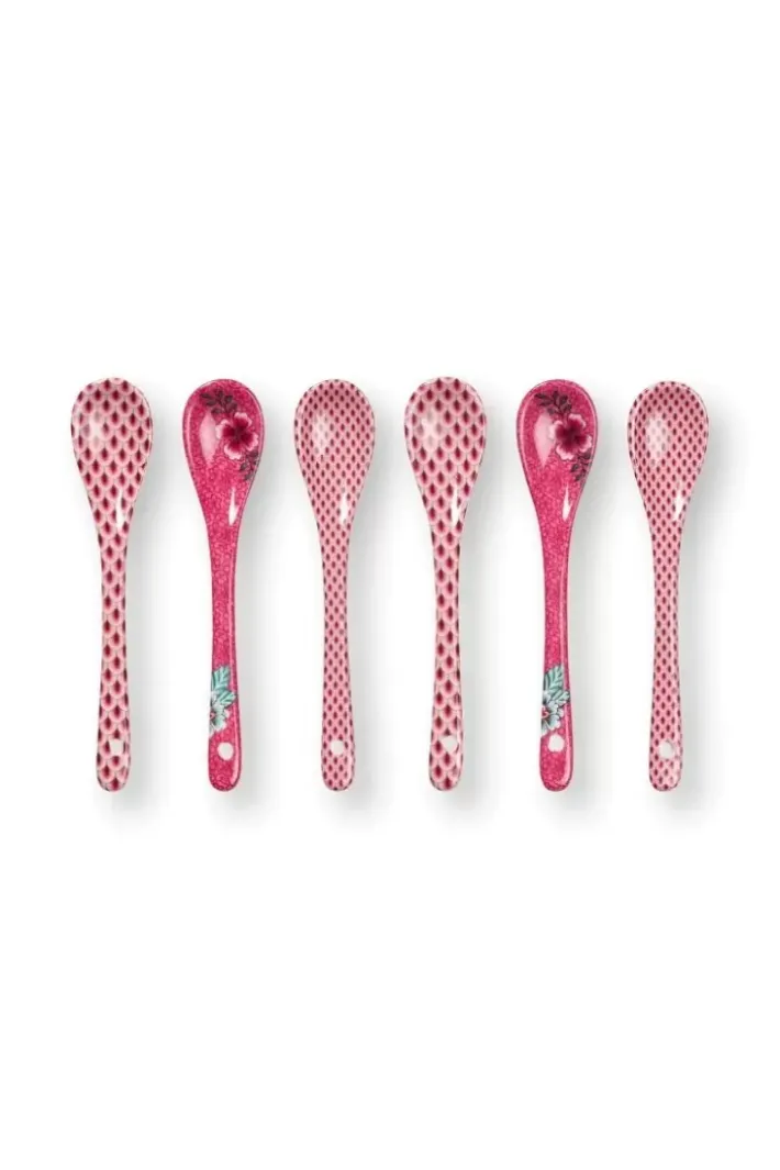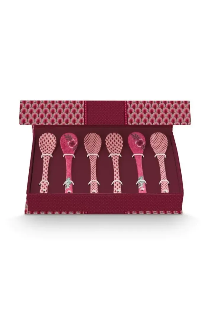 Erganze Dein Geschirr Mit Diesem Flower Festival Teeloffel. Dieses Set Aus 6 Verschiedenen Teeloffel Hat Einen Dunkelrosa Hintergrund Und Ist Mit Dem Eleganten Flower Festival Design Dekoriert. Dieses Reiche Blumenmuster Besteht Aus Einer Variation Fantasievoller Chintzblumen In Rot Und Rosa Mit Hellblauen Und Grunen Blattern. Die Spielerisch Platzierten Blutenzweige Mit Aufwendig Verzierten Bluten Und Blattern Machen Dieses Raffinierte Design Zu Einem Besonders Reichen Erlebnis. Unser Flower Festival Porzellan Wird In Ihrem Geschirrschrank Und Auf Ihrem Tisch Strahlen.