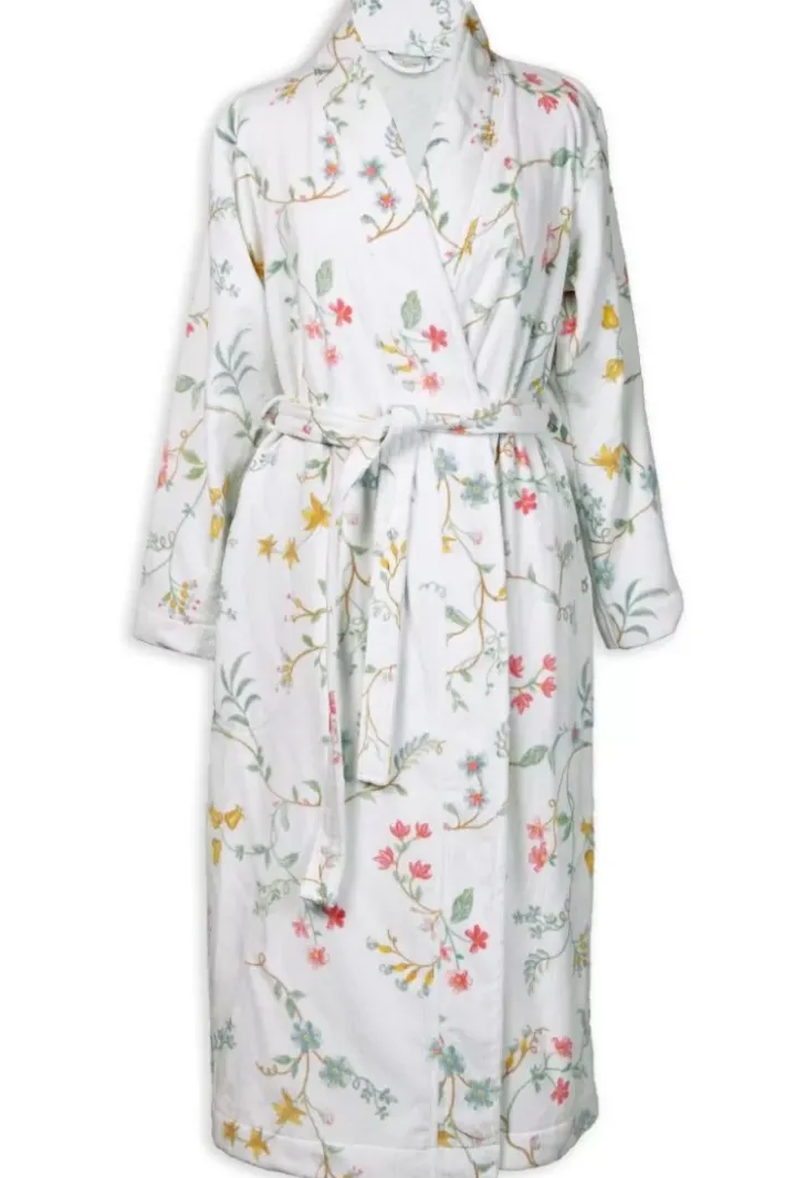 Wickeln Sie Sich In Diesen Sommerlichen Weiss Les Fleurs-Bademäntel Mit Kleinen Dekorierten Fantasy-Blumen. Dieser Weiss Les Fleurs-Bademäntel Darf Nicht Fehlen Nach Einem Langen Abend Oder Fruh Am Morgen. Der Bademäntel Les Fleurs Ist Mit Zierlichen Blutenzweigen Mit Kleinen, Verzierten Fantasieblumen Gemustert. Die Innenseite Des Bademäntels Ist Einfarbig Weiss. Der Bademäntel Von Les Fleurs Passt Gut Zu Anderen Artikeln Aus Der Kollektion Und Sorgt Fur Einen Schonen Mix & Match-Effekt In Ihrem Badezimmer. Der Bademäntel Hat Einen Gut Abschliesenden Steppkragen Sowie Eingrifftaschen Und Wird Mit Einem Langen Gurtel Geschlossen. Der Bademäntel Les Fleurs Ist Aus Velours-Frottier Aus Hochwertiger, Reiner Baumwolle In Der Qualitat 380 G/M2 Gefertigt. Dadurch Fuhlt Sich Der Bademäntel Super Weich Und Robust An. Das Hochwertige Material Hat Hervorragende Feuchtigkeitsabsorbierende, Atmungsaktive Und Schnell Trocknende Eigenschaften. Ein Bademäntel Zum Verlieben!