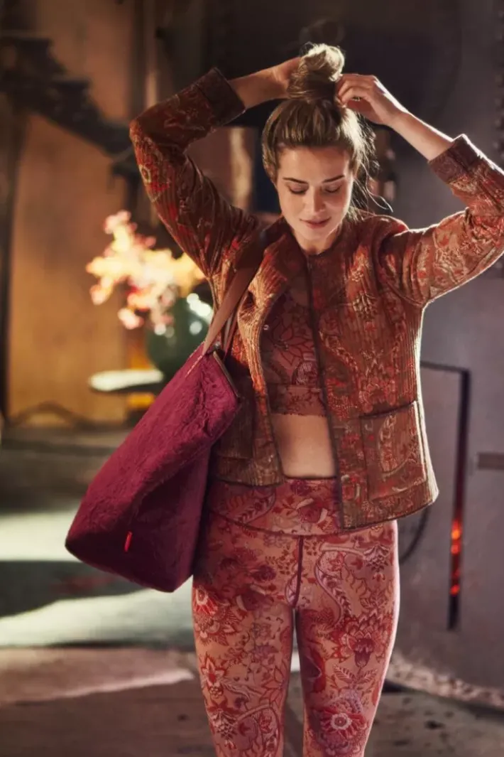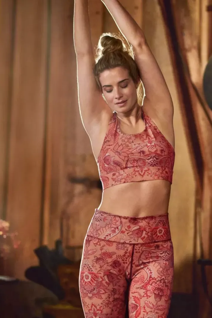 Diese Lange Sportleggings In Terra Rosa Ist Mit Dem Frohlichen Kyoto Festival Design Versehen. Das Sich Wiederholende Blumenmuster Besteht Aus Einer Variation Fantasievoller Chintzblumen Und Blattern. Die Taille Ist Elastisch Und Sorgt Fur Eine Bequeme Und Vorteilhafte Passform.