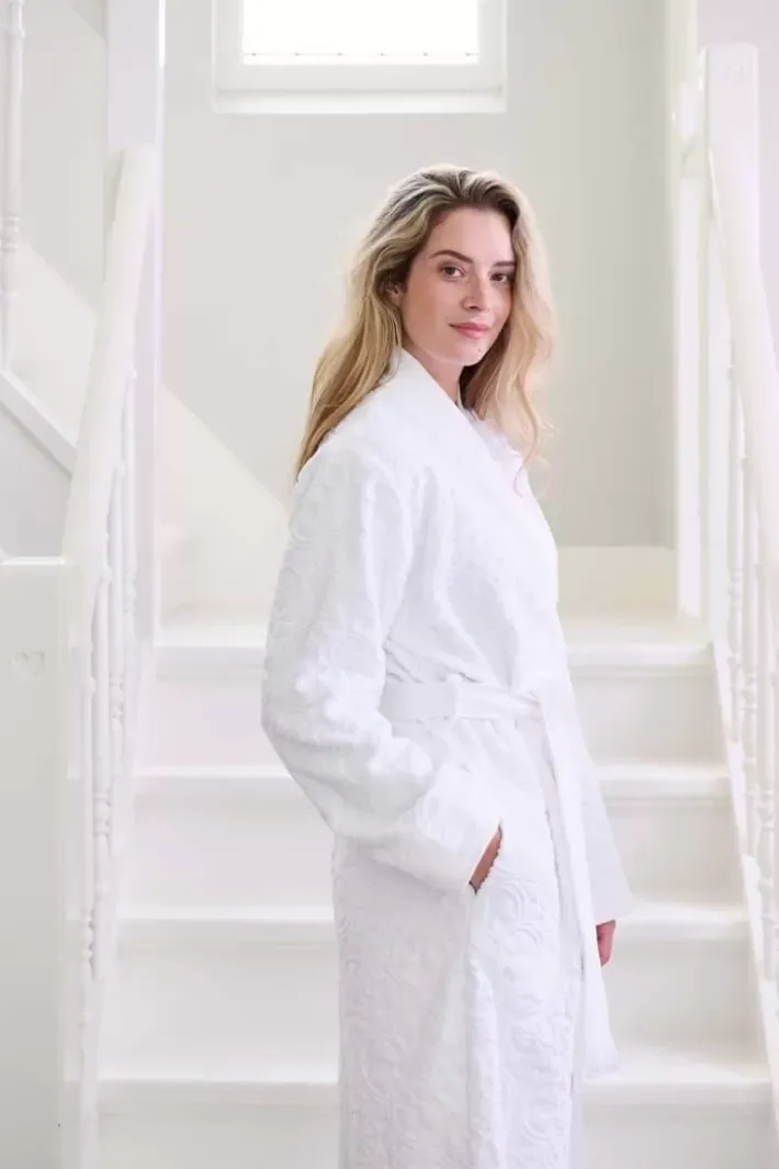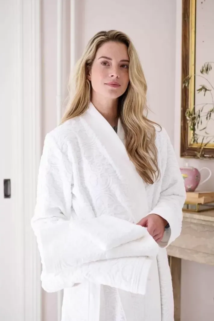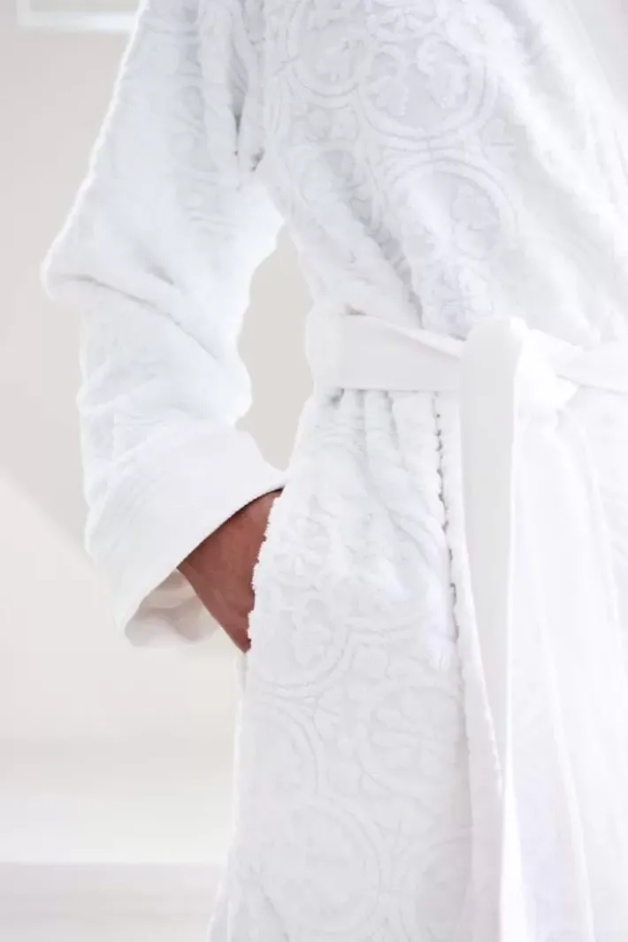 Dieser Weise Mosaic De Pip Bademäntel Ist Schon Morgens Zu Tragen, Aber Auch Toll, Um Den Tag Damit Zu Beenden. Dekoriert Mit Einem Tonal Gewebten Fliesenmotiv Mit Hoch-Tief-Effekt. Der Bademäntel Hat Einen Schon Taillierten Steppkragen, Seitentaschen Und Wird Mit Einem Langen Gurtel Geschlossen. Der Bademäntel Ist Aus 100% Hochwertigem Velours-Frottier Baumwolle Gefertigt Mit Einer Qualitat Von 380 Gr/M2.