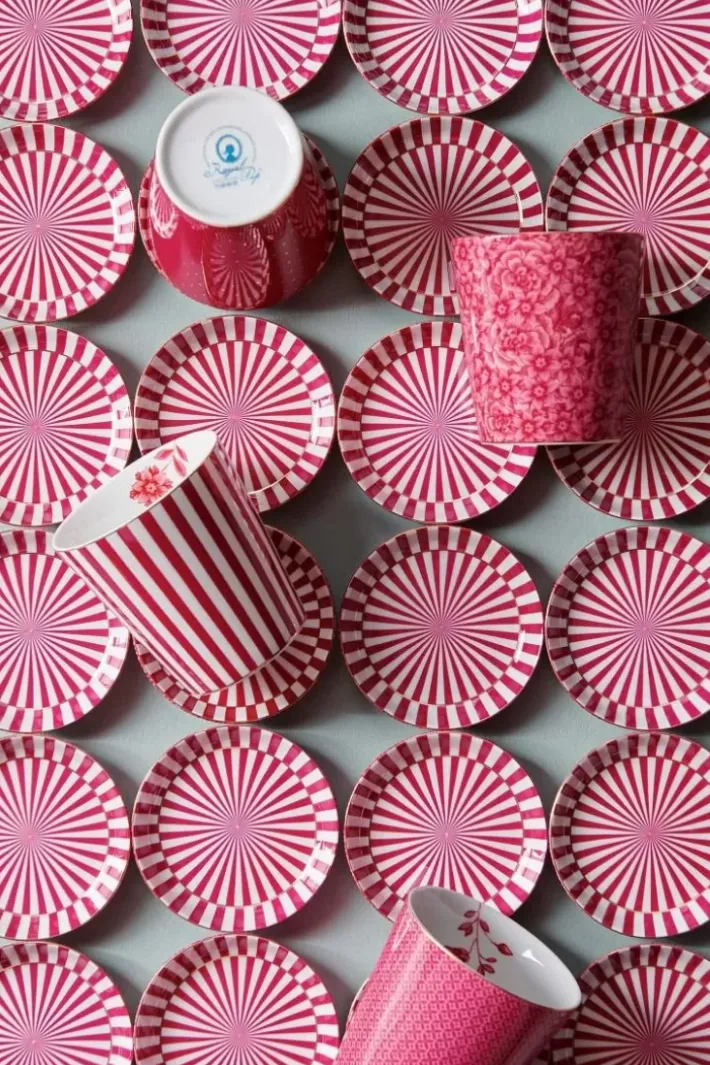 Sale Pip Studio Royal Stripes Tasse Blumen & Teebeutelablage Dunkel Rosa