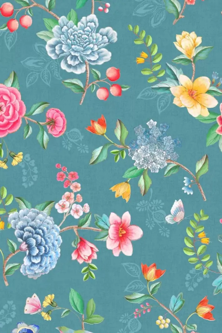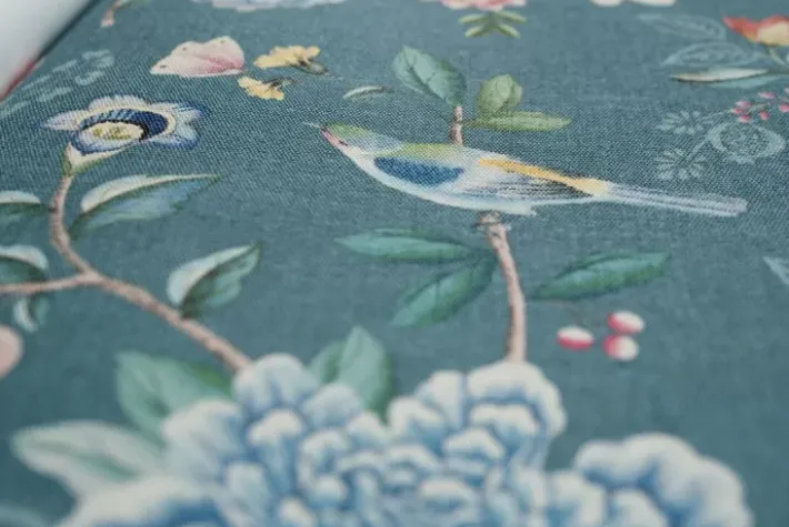 Was Macht Das Petrol Good Evening Design Zu Einem Hingucker An Ihrer Wand? Das Blumenmuster Good Evening Ist Ein Wunderschones Grosartiges Design Auf Vinyl Mit Bunten Blumen Und Tropischen Vogeln. Der Druck Ist Von Traditionellen Orientalischen Wandgemalden Inspiriert. Aufgrund Der Struktur Der Tapete Sieht Es Fast Wie Ein Schoner Stoff Aus, Der Auf Die Wand Aufgetragen Wurde. Das Good Evening-Design Lasst Sich Leicht Mit Fast Allen Anderen Designs Aus Der Kollektion Kombinieren Und Sorgt Fur Einen Schonen Mix & Match-Effekt. Die Pip Studio Good Evening Tapete Ist In Verschiedenen Farben Wie Gelb, Weis, Sand, Benzin, Hellblau, Rot Und Grun Erhaltlich Und Schafft Eine Frohliche Atmosphare In Ihrem Zuhause.