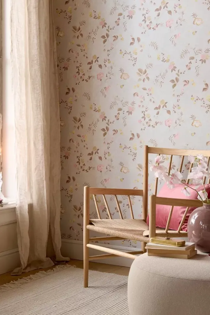 Gib Deinem Zuhause Ein Zauberhaftes Makeover Mit Der Wunderschonen Tokyo Blossom Tapete In Der Farbe Sand. Das Design Hat Einen Detaillierten Print Aus Kleinen, Pastellfarbenen Bluten Und Blattern, Die Wie Gestickt Aussehen. Die Farben Des Kissenbezugs Sind Zart Mit Subtilen Farbakzenten. Der Hintergrund Hat Eine Gedruckte, Glanzende Textur, So Dass Diese Tapete Wie Echte Seide Wirkt. Die Tokyo Blossom Tapete Ist In Verschiedenen Farben Erhaltlich: Jade Grun, Senfgelb, Khaki Und Rosa Mauve.