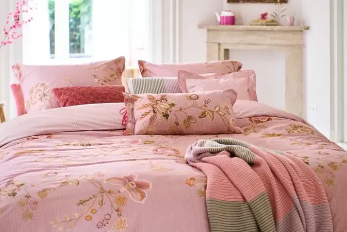 Der Rosa Cece Fiore Bettbezug Enthalt Grose Und Reich Verzierte Fantasieblumen, Die Ihnen Ein Wunderschones Blumenmuster Verleihen. Der Bezug Und Die Kissen Haben An Den Seiten Eine Gesteppte Oxford-Kante Und Sind Mit Einem Farbigen Rand Versehen, Der Ein Luxurioses Aussehen Verleiht. Die Kissenbezüge Haben Einen Gepolsterten Knopfverschluss Und, Genau Wie Der Bezug, Zwei Unterschiedliche Seiten. Sie Konnen Beide Seiten Verwenden Und Einen Spielerischen Mix & Match-Effekt Auf Ihrem Bett Erzeugen.