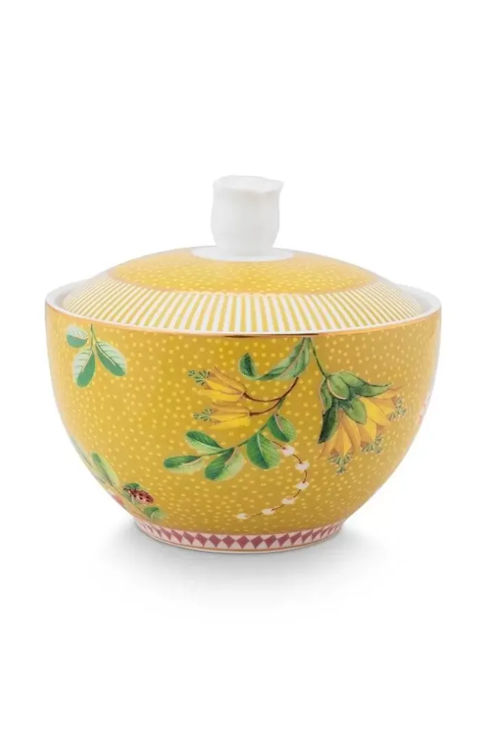 Diese Frohliche Zuckerdose Ist Die Perfekte Erganzung Fur Porzellanliebhaber. Die Runde Zuckerdose Ist Mit Dem Frohlichen La Majorelle Design Verziert. Dieses Design Besteht Aus Kleinen, Stilisierten Blumenzweigen Mit Einer Vielfalt Exotischer Blumen. Die Schonen, Gelben Details Und Der Gestreifte Deckel Verleihen Der Zuckerdose Einen Frohlichen Touch. Oben Auf Dem Deckel Befindet Sich Eine Porzellanrose. Unser La Majorelle Porzellan Wird In Ihrem Geschirrschrank Und Auf Ihrem Tisch Strahlen!