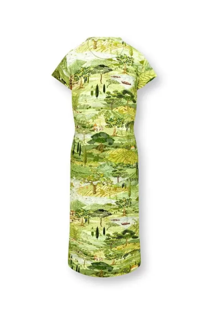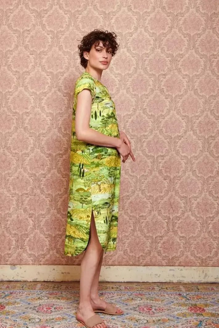 Dieses Grune Nachthemd Hat Das Wunderschone Toscana-Design. Die Zypressen Und Subtilen Verweise Im Druck Auf Die Toskanische Kultur Geben Ihnen Das Gefuhl, Mitten In Der Italienischen Landschaft Zu Sein. Das Nachthemd Hat Einen V-Ausschnitt Mit Passenden Knopfen.