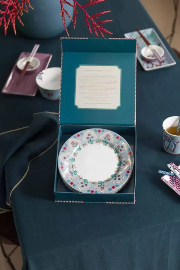 Erganzen Sie Ihr Geschirr Um Diese Flower Festival Frühstücksteller Mit Einem Durchmesser Von 21Cm. Dieses Set Aus 4 Verschiedenen Frühstücksteller Hat Einen Blauen Hintergrund Und Ist Mit Dem Eleganten Flower Festival Design Dekoriert. Dieses Reiche Blumenmuster Besteht Aus Einer Variation Fantasievoller Chintzblumen In Rot Und Rosa Mit Hellblauen Und Grunen Blattern. Die Spielerisch Platzierten Blutenzweige Mit Aufwendig Verzierten Bluten Und Blattern Machen Dieses Raffinierte Design Zu Einem Besonders Reichen Erlebnis. Unser Flower Festival Porzellan Wird In Ihrem Geschirrschrank Und Auf Ihrem Tisch Strahlen.