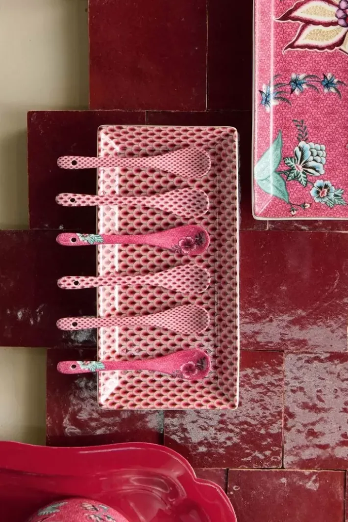 Erganze Dein Geschirr Mit Diesem Flower Festival Teeloffel. Dieses Set Aus 6 Verschiedenen Teeloffel Hat Einen Dunkelrosa Hintergrund Und Ist Mit Dem Eleganten Flower Festival Design Dekoriert. Dieses Reiche Blumenmuster Besteht Aus Einer Variation Fantasievoller Chintzblumen In Rot Und Rosa Mit Hellblauen Und Grunen Blattern. Die Spielerisch Platzierten Blutenzweige Mit Aufwendig Verzierten Bluten Und Blattern Machen Dieses Raffinierte Design Zu Einem Besonders Reichen Erlebnis. Unser Flower Festival Porzellan Wird In Ihrem Geschirrschrank Und Auf Ihrem Tisch Strahlen.