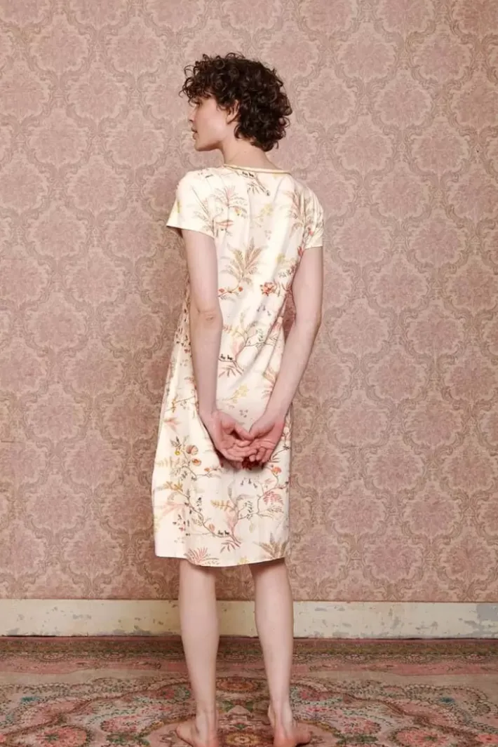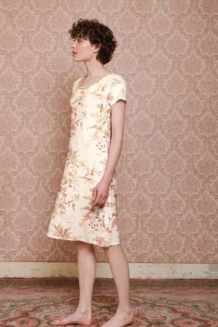 Dieses Weise Nachthemd Zeigt Das Verspielte Isola-Design. Das Verspielte Design Hat Einen Raffinierten Druck Aus Bunten Zweigen Und Farnen. Die Farben Des Nachthemdes Sind Sanft Mit Dezenten Farbakzenten. Das Nachthemd Hat Kurze Armel.