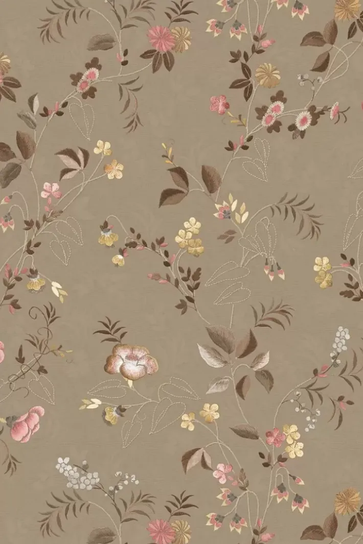 Gib Deinem Zuhause Ein Zauberhaftes Makeover Mit Der Wunderschonen Tokyo Blossom Tapete In Der Farbe Khaki. Das Design Hat Einen Detaillierten Print Aus Kleinen, Pastellfarbenen Bluten Und Blattern, Die Wie Gestickt Aussehen. Die Farben Des Kissenbezugs Sind Zart Mit Subtilen Farbakzenten. Der Hintergrund Hat Eine Gedruckte, Glanzende Textur, So Dass Diese Tapete Wie Echte Seide Wirkt. Die Tokyo Blossom Tapete Ist In Verschiedenen Farben Erhaltlich: Jade Grun, Senfgelb, Sand Und Rosa Mauve.